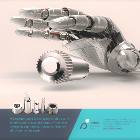 Infinix Precision Corp., starting from October 2016, is dedicated to serving its customers with a wide range of forming tools such as punches, dies, pins, cutters and fingers. Its 2,000 m2 up-to-date plant and headquarters are located in Tainan City in southern Taiwan.
